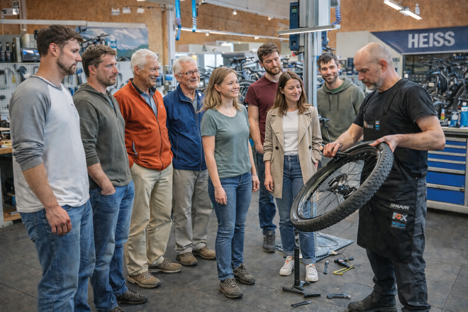 Ob Einsteiger oder Vielfahrer – unsere Workshops sind verständlich aufgebaut und individuell betreut. Du brauchst kein Vorwissen, nur dein Bike und Freude am Lernen.